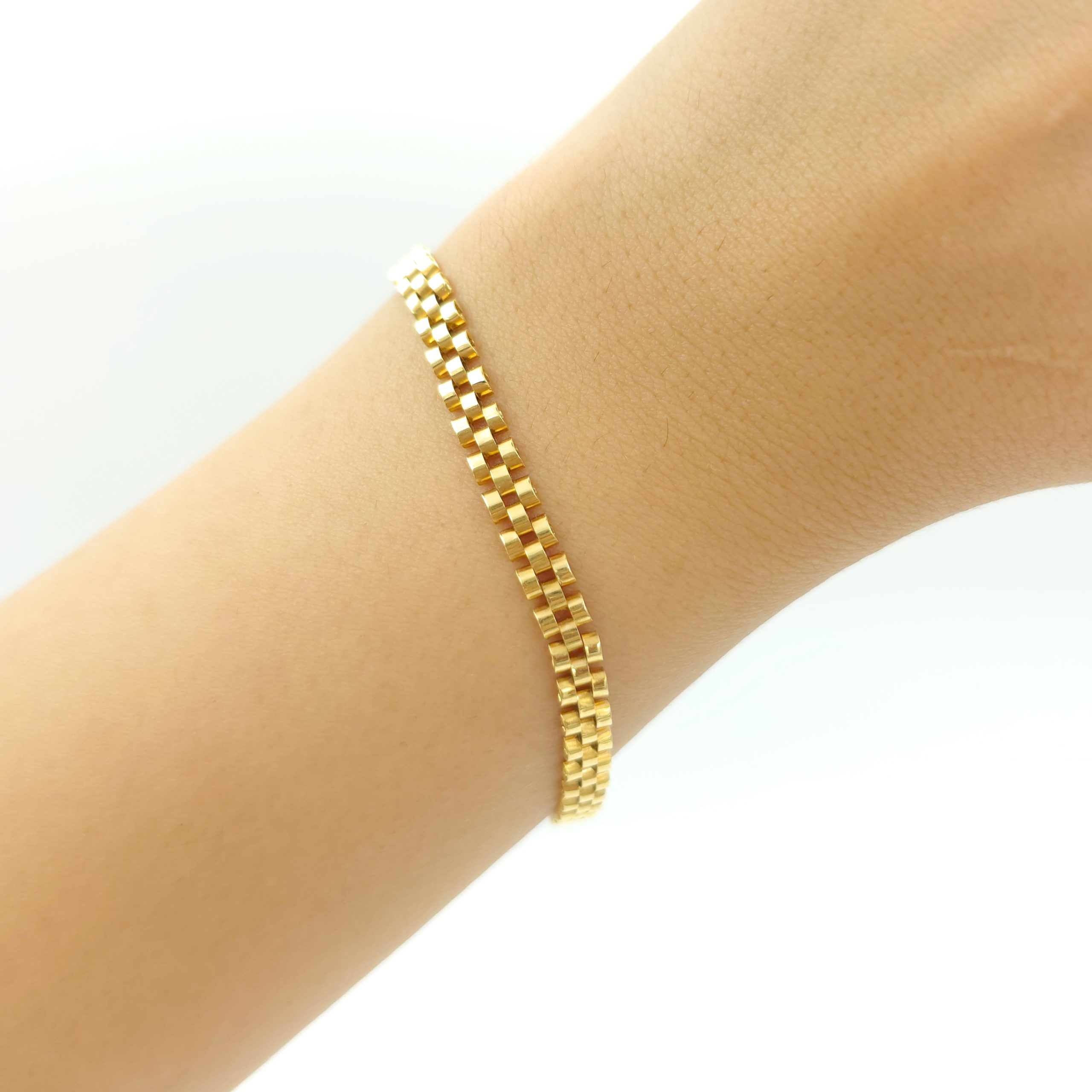 2. کیفیت و دوام: طلا به عنوان یک فلز گرانبها و مقاوم، دارای طول عمر بالایی است. دستبندهای روکلس معمولاً از طلا با عیار بالا ساخته میشوند که این امر به دوام و کیفیت آنها افزوده میشود.