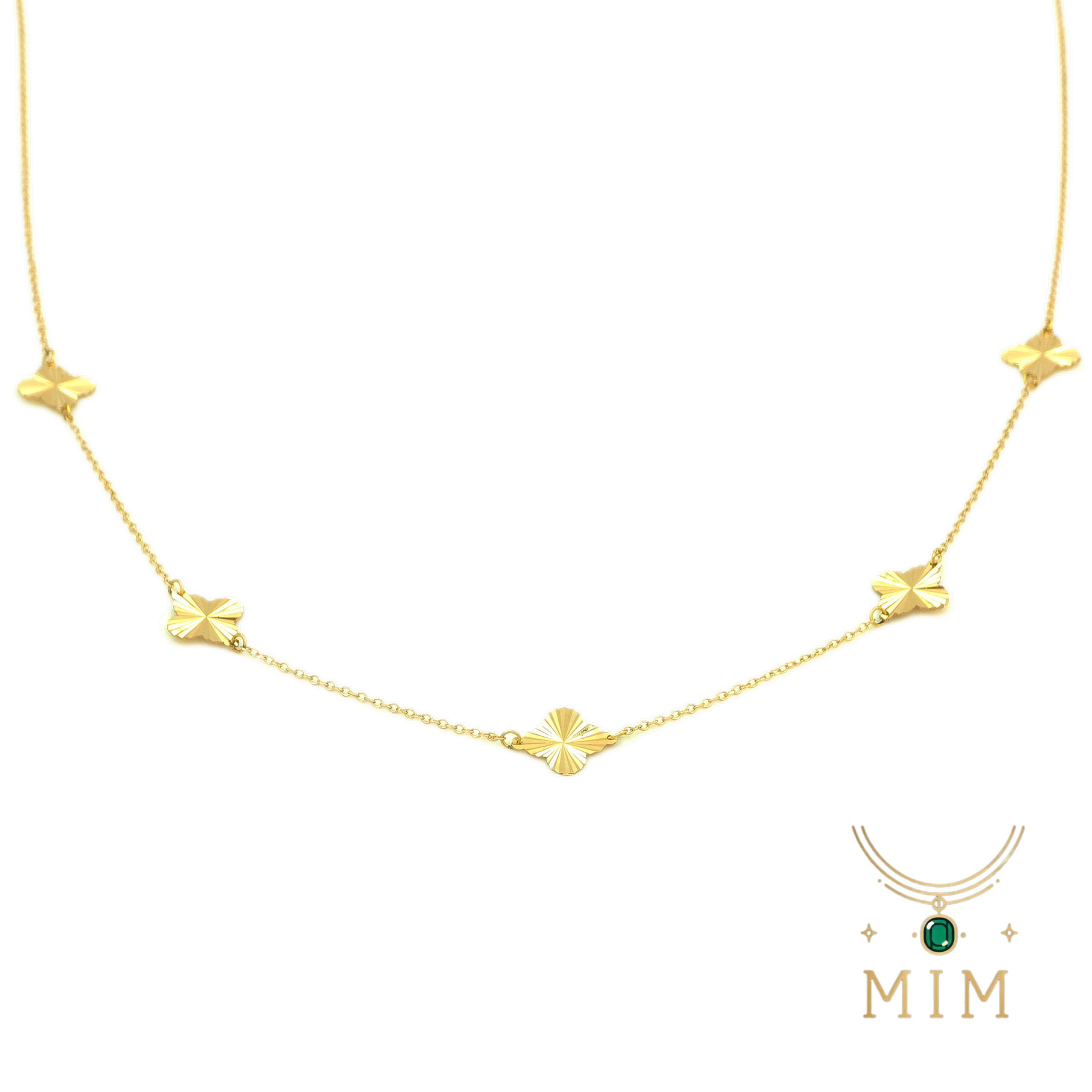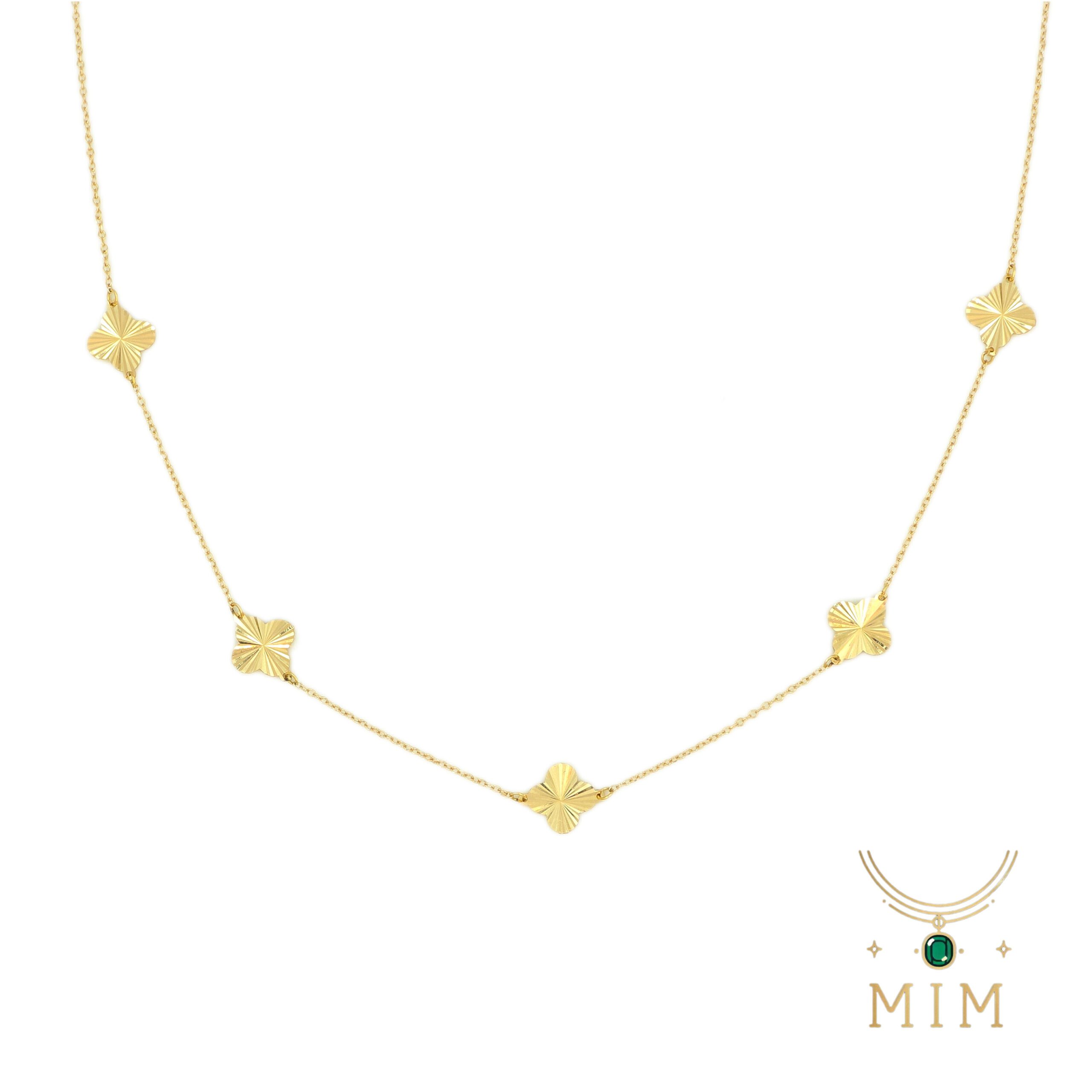در بسیاری از مدل های گردنبند ونکلیف، این گل های نمادین به صورت تکی، دوتایی یا زنجیره ای از چند آویز متصل به هم دیده می شوند. هر یک از این گل ها با سنگ هایی نظیر Mother of Pearl (مادر مروارید)، Onyx، Carnelian، Lapis Lazuli یا Malachite ساخته می شوند. قاب طلایی دور گل ها به صورت دانه دانه و منجوق دوزی شده طراحی شده که علاوه بر درخشش بیشتر، حالتی کلاسیک و زنانه ایجاد می کند.